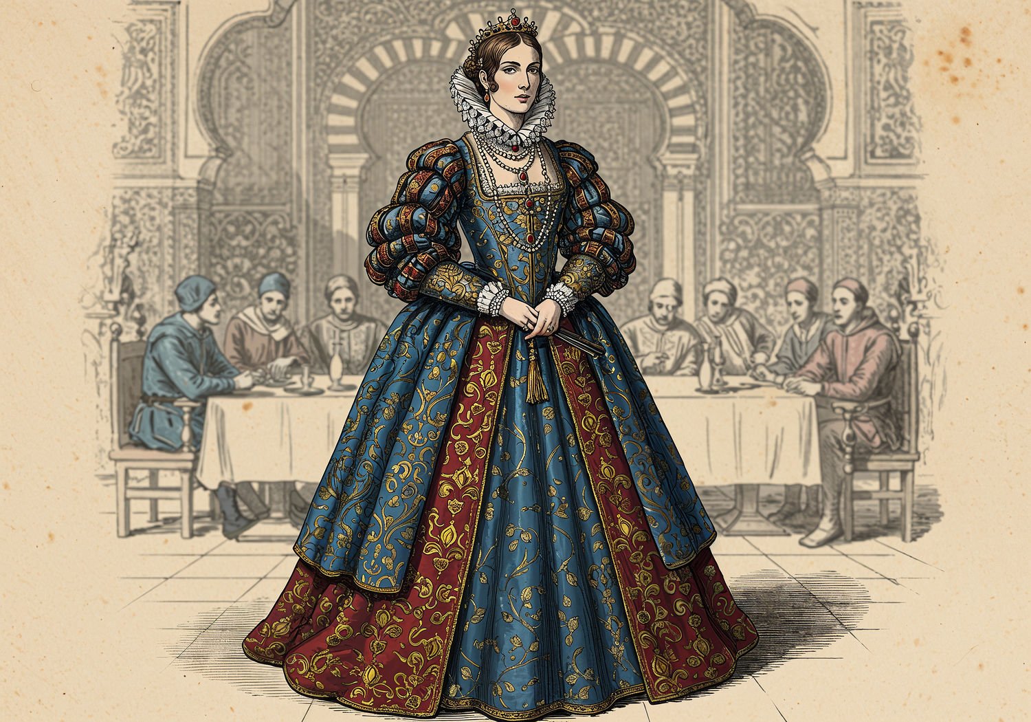 Uczty trwały godzinami – od recytacji poezji po tańce zambra, inspirowane arabskimi rytuałami. Kobiety poruszały się w sukniach z gracją, falbany spódnic wirując w rytm muzyki. Gorsety zapewniały wyprostowaną postawę, co było istotne podczas audiencji z posłami z Grenady czy Maroka. Kroniki, takie jak Crónica de Alfonso X, opisują, jak królowa Wiłosła z Burgundii nosiła suknię z perełkowymi haftami, łącząc surowość kastylijskich tradycji z elegancją andaluzyjską.